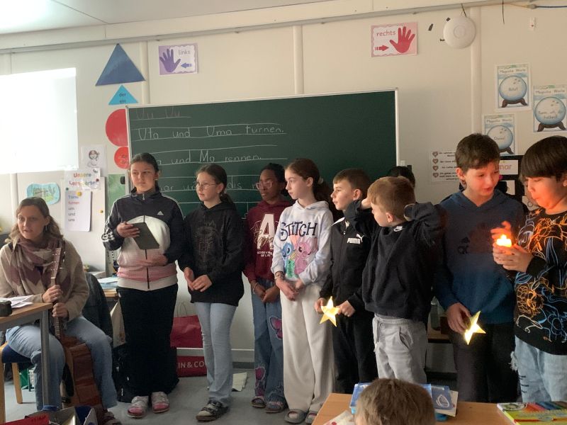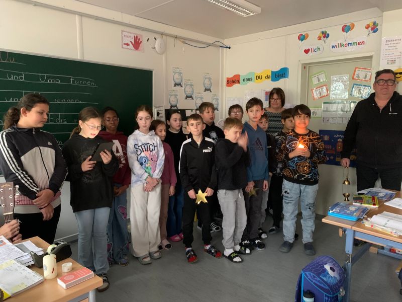 Die Kinder der 4. Klassen „tragen“ Licht zu den anderen Kindern.