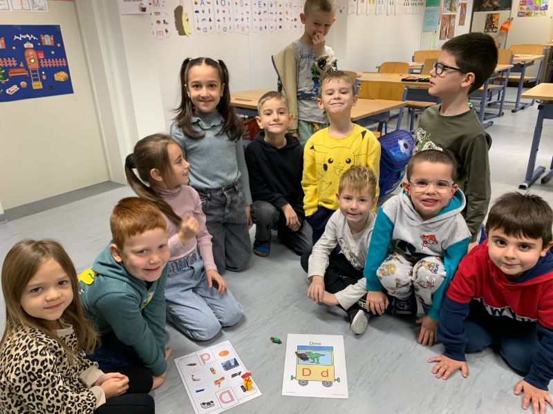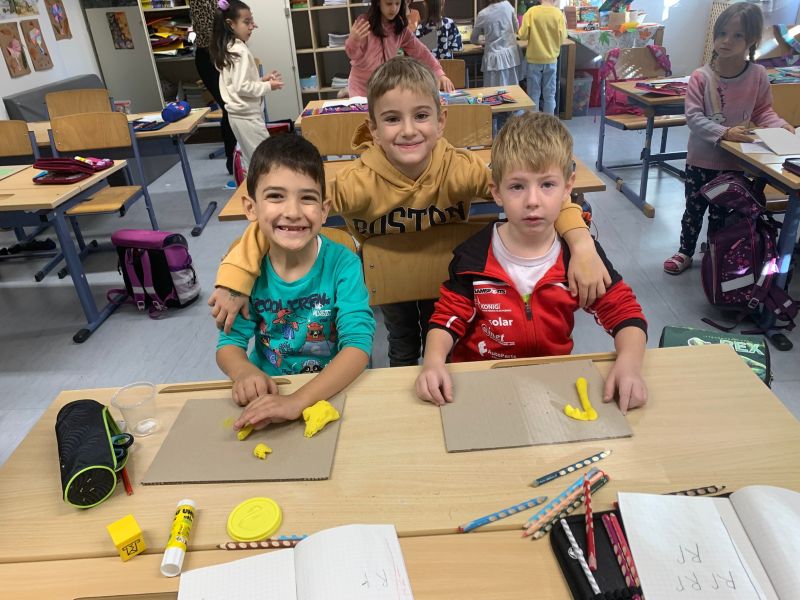 Die 1a Klasse lernt die Buchstaben mit allen Sinnen.